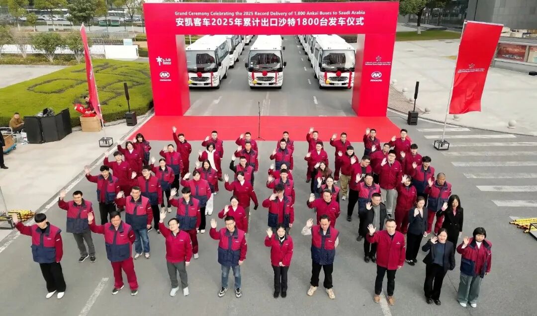 Le 2 décembre, la cérémonie de livraison des 1 800 bus Ankai destinés à l'Arabie saoudite pour 2025 s'est déroulée à l'usine Ankai. Lors de cette cérémonie, les représentants d'Ankai Bus ont remis officiellement les « clés d'or », symboles de confiance et d'engagement, à leur partenaire stratégique de longue date, le groupe Naghi, ainsi qu'à leurs principaux clients finaux. Cet événement a non seulement mis en lumière le rayonnement international de la marque Ankai Bus, mais a également ouvert de nouvelles perspectives pour une synergie plus étroite au sein de l'industrie automobile sino-saoudienne.