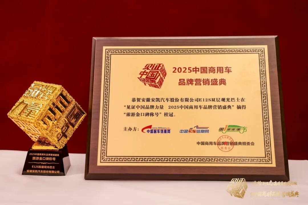 Récemment, le « Forum sur le développement de haute qualité du nouvel écosystème des transports et la cérémonie de lancement des marques de véhicules commerciaux chinois 2025 » ont débuté en grande pompe dans la nouvelle zone de Xiong'an, au Hebei. Ankai Bus a reçu deux distinctions prestigieuses : « Unité de contribution exceptionnelle aux services de transport pour les grands événements » et « Titre d'or du bouche-à-oreille ». Parallèlement, ses lignes N12 et E12S ont été récompensées. bus touristiques à impériale Ankai Bus a également remporté les plus hautes distinctions : « Modèle routier le plus vendu » et « Titre d'or du tourisme de bouche à oreille », respectivement, grâce à ses performances exceptionnelles et à son succès commercial. Ces quatre distinctions illustrent parfaitement la force d'Ankai Bus en matière d'innovation produit, d'amélioration des services et de responsabilité sociale, incarnant l'essence même du développement de haute qualité dans le secteur chinois des véhicules utilitaires.